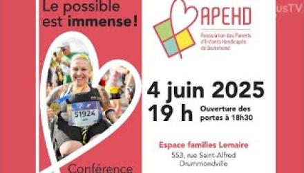 Video Link 27 Mai 2025 Conférence avec l'athlète Jani Barré au profit de l'APEHD - Entrevue nousTV Drummond
